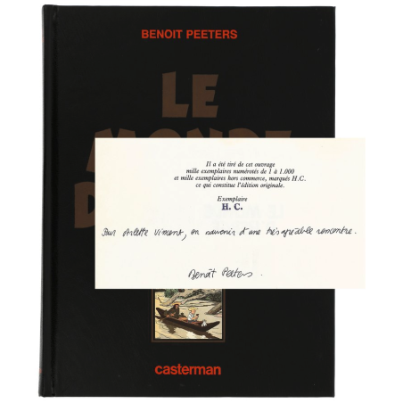 Tirage de luxe "Le Monde d'Hergé" n°HC, dédicacé et signé par Benoit Peeters (Ed. Casterman, 1983, sous glissière). Très proche de l'état neuf.